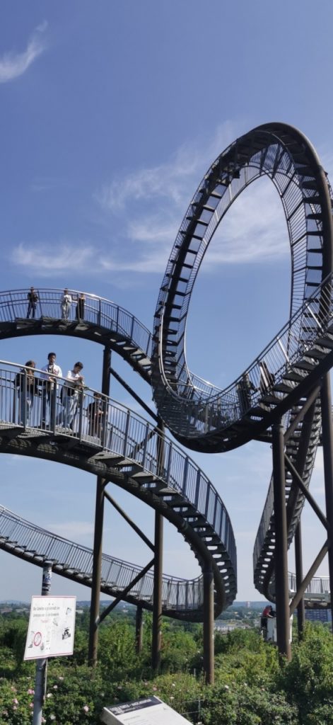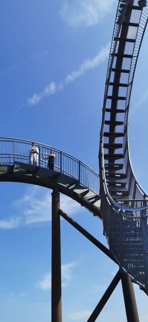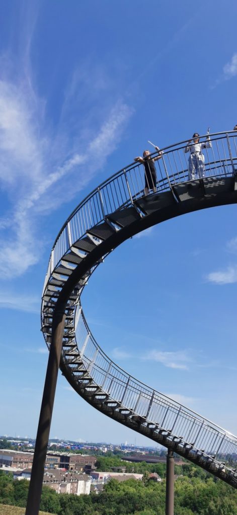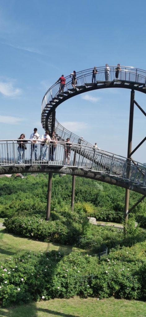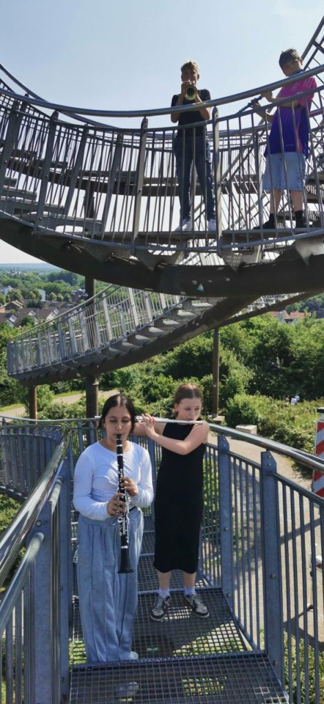 Am 17.Juni wunderten sich doch einige Besucher der Wanheimer Landmarke Tiger und Turtle über die coolen Jazzklänge in der sommerlichen Morgenluft: das Bläserprofil der Klassen 6 gab ein kostenloses Freiluftkonzert in schwindeliger Höhe auf der mittlerweile europaweit bekannten begehbaren Stahlskulptur.