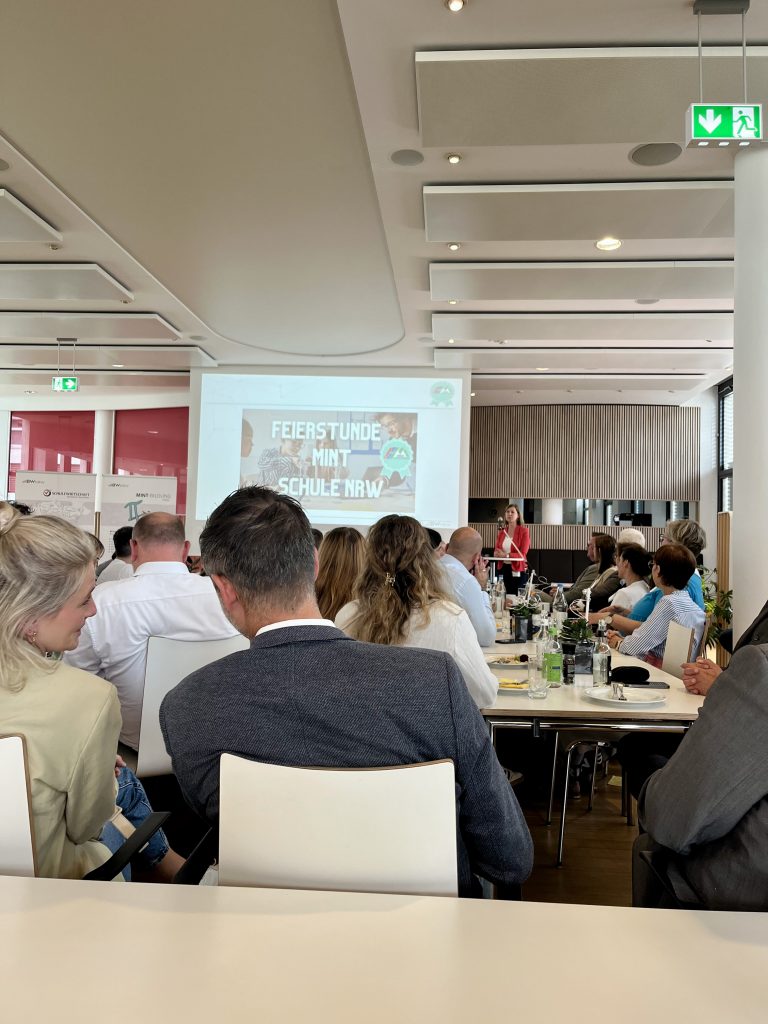 Die offizielle Laudatio hielt Dr. Wasilios Rodoniklis vom Bildungswerk der Nordrhein-Westfälischen Wirtschaft (BWNRW). In seiner Ansprache betonte er die große Vielfalt und Praxisorientierung der MINT SCHULEN NRW. Dabei hob er hervor: