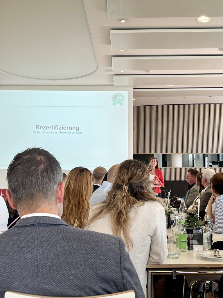 Die feierliche Übergabe der Urkunde fand am Mittwoch bei Siemens in Düsseldorf statt. Für unsere Schule waren Herr Eich und Frau Schwarz vor Ort, um die Auszeichnung persönlich entgegenzunehmen. Auch eine weitere Schule aus Duisburg erhielt an diesem Tag ihre Rezertifizierungsurkunde.
